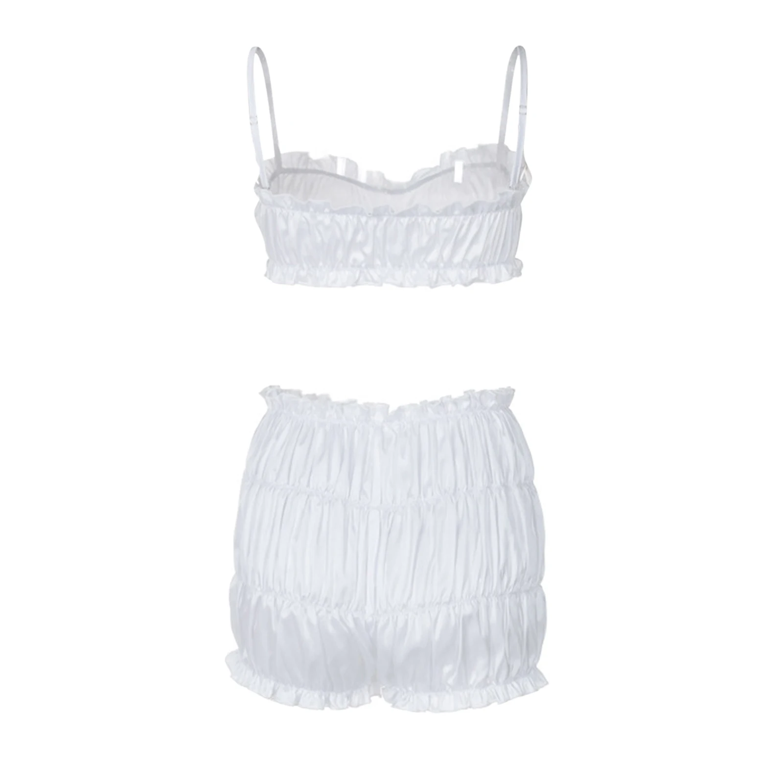Women 2-Piece Outfits Summer Ruched Sleeveless Crop Camisole and Elastic Shorts Club Streetwear Fashion Clothes